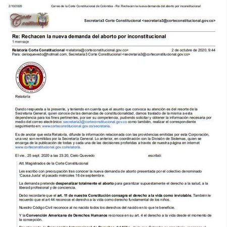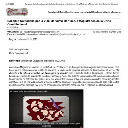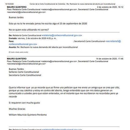 De hecho, uno de los ciudadanos que hizo esa intervención le escribió después a la Corte diciéndole que nunca había enviado ese mensaje y que no sabía quién estaba usando su correo. Diez días después, el 14 de octubre, se rectificó aclarando que él sí había firmado una petición de “CitizenGo” en internet, que luego se convirtió en ese correo masivo.