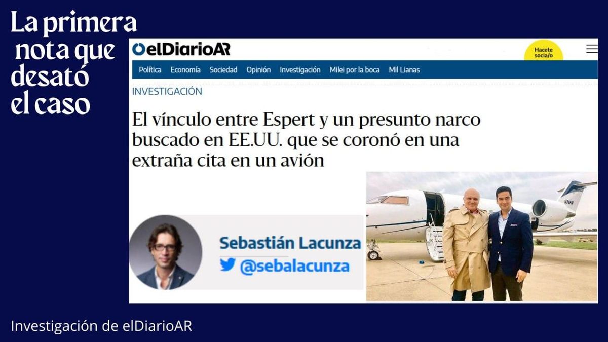 El 27 de julio, elDiarioAR publicó por primera vez una nota contando los vínculos entre Espert y Machado. Allí se hacía mención a los viajes en su avión privado y también a la mina de oro en Guatemala. Ese dato es clave porque el diputado libertario terminó reconociendo haber recibido ese dinero pero dijo que se trató de una asesoría económica a una empresa minera de ese país. Sin embargo, Minas de Guatemala está en el corazón de la investigación por presuntos fraude y narcotráfico.