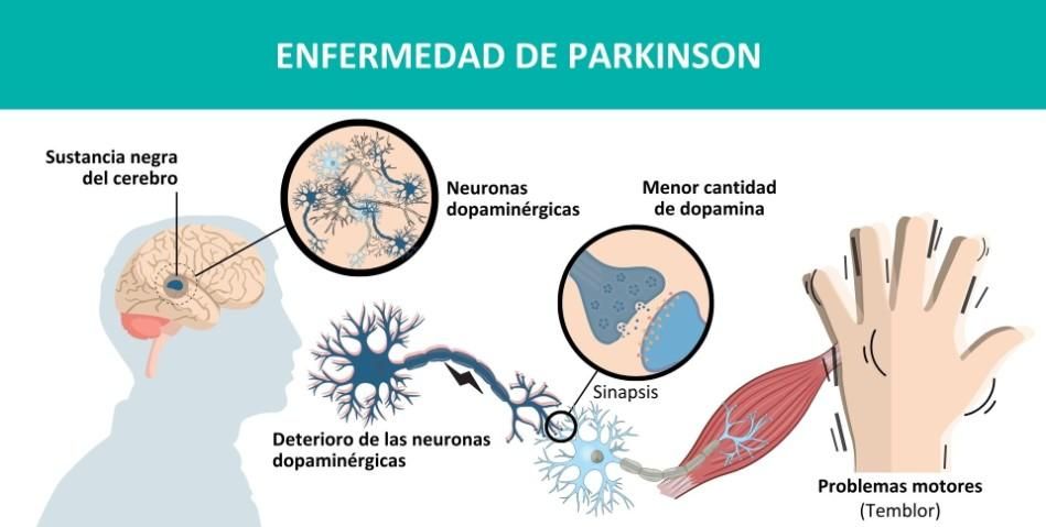 El daño aparece cuando las células del sistema encargadas de producir dopamina, una hormona que regula el movimiento, detienen su producción y esto termina por desencadenar la enfermedad.