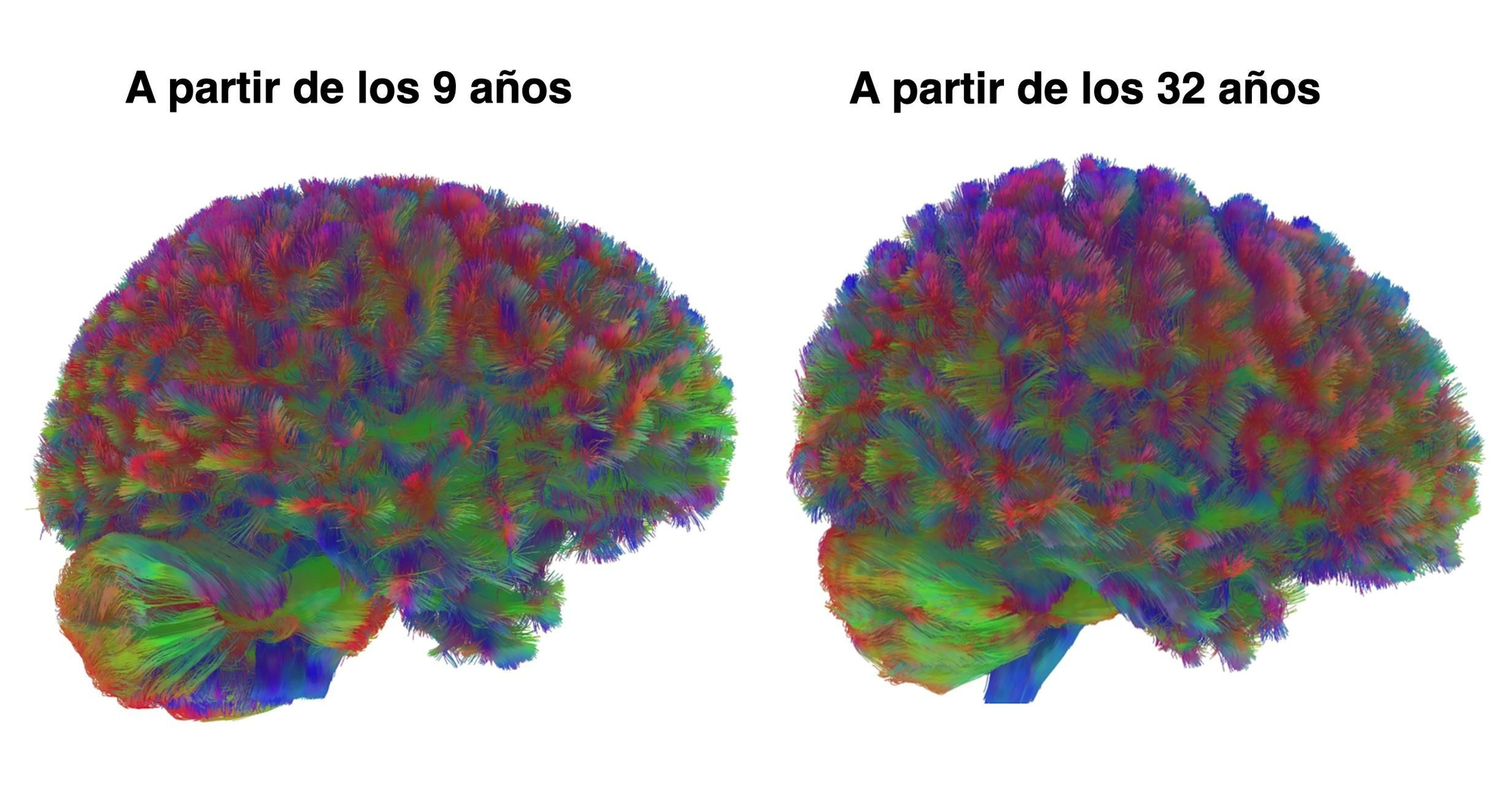 Para entender mejor el resultado, el especialista lo compara con trazar un mapa con la red de autopistas y las carreteras neuronales a lo largo de la vida. Este mapa también recoge la situación de villas y de ciudades principales, los núcleos cerebrales, aunque los autores no saben lo que ocurre dentro de cada una. “Dentro de esa distribución de carreteras, ellos ven que hay cambios grandes”, comenta el neurocientífico. “Por ejemplo, en la infancia lo que hay es una red súper extensa de carreteras sin asfaltar. De los 6 a los 12 años hay un cambio y se empiezan a fundar ciudades que van a ser importantes núcleos”, prosigue. “Lo que tenemos desde ahí hasta los 32 años es el proceso de asfaltado de vías y de fundación de villas y ciudades. De tal manera que el sistema alcanza su máxima eficacia a los 32 años”.