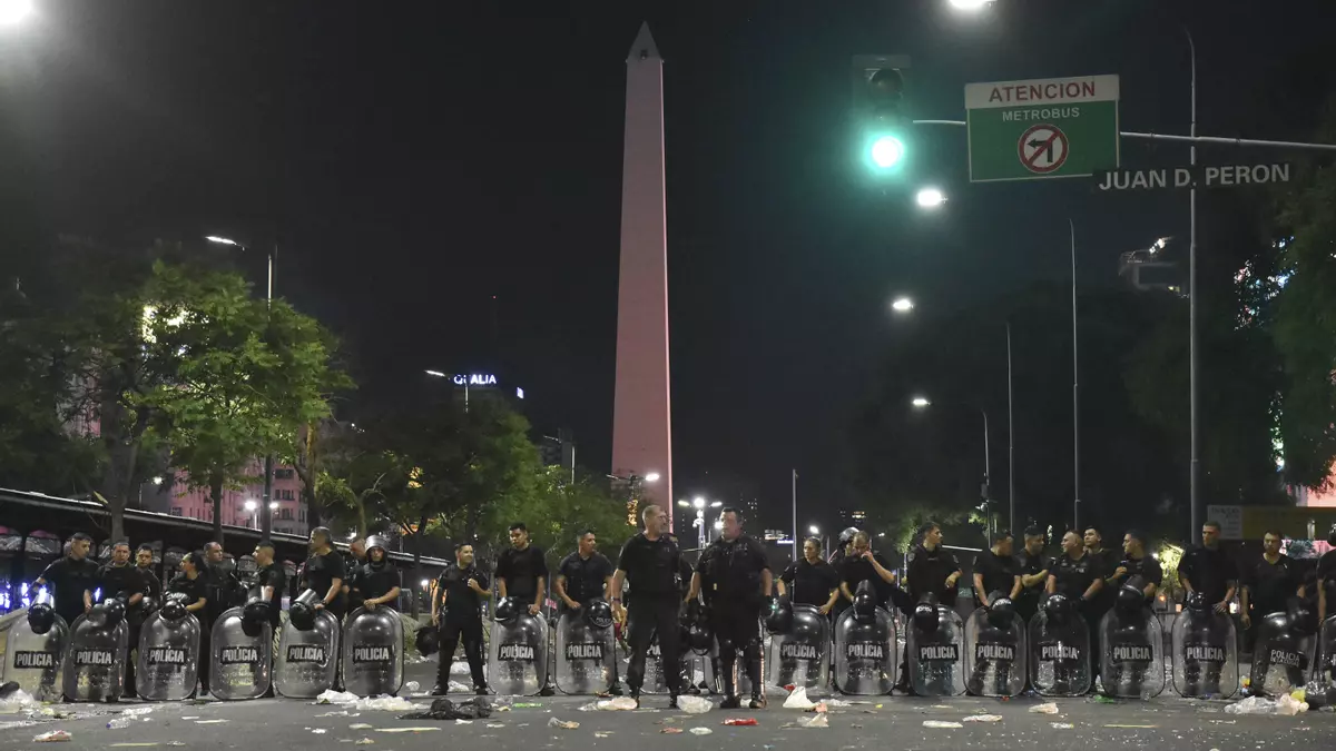 Fuentes policiales informaron que los disturbios se produjeron cuando la Policía intentó desalojar a las personas que permanecían dentro del Obelisco, ya después que la mayoría de los hinchas ya se habían retirado.