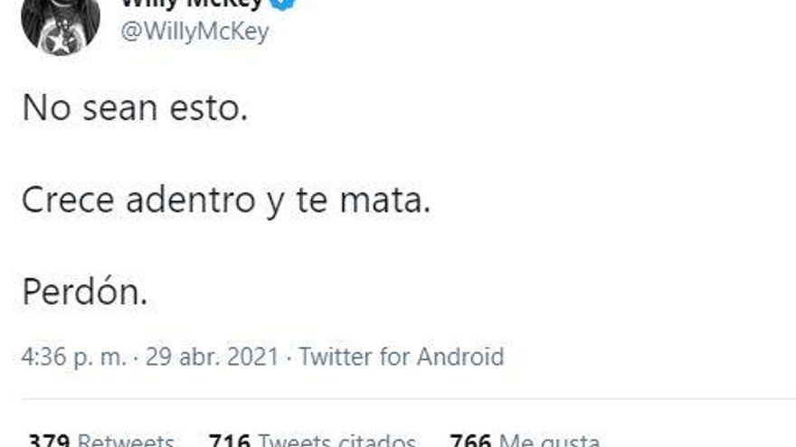 Todo estalló el 24 de abril. Se publicaron testimonios en una cuenta de Instagram. Una mujer joven acusaba de violencia sexual al cantante de una banda de rock. Apareció primero un caso, luego otro. Parecido a lo que aquí pasó con Cristian Aldana, el vocalista de El Otro yo. En la cuenta se fueron recopilando testimonios. Luego, otra chica denunció a un director de teatro de Caracas. A los dos días, el grupo del director denunciado anunciaba que lo separaba. Una vez que se viralizaron esos dos casos comenzó una catarata. Otros músicos de bandas venezolanas con público joven, como Tomates Fritos, Le’Cinema y Okills también eran acusados. En medio de ese clima, hace dos días, una joven escribió un hilo en Twitter en el que denunciaba al conocido escritor Willy McKey.